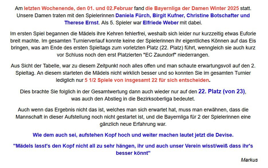 Meisterschaft Bayernliga Winter 2025 Damen 01.02./02.02.2025 |