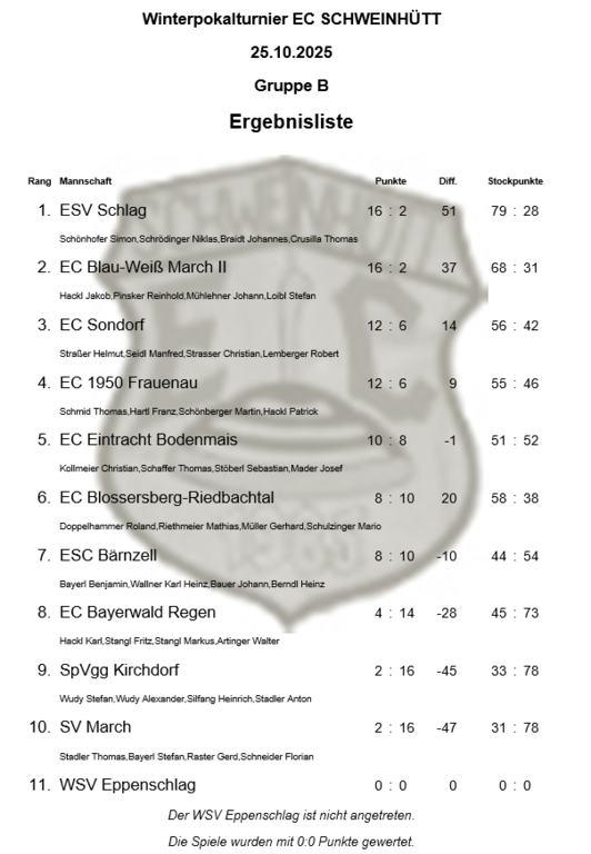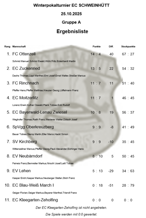 Die Mannschaften der Gruppe A und B akzeptierten den zusätzlichen Aussetzer, womit das Turnier dann reibungslos verlief.