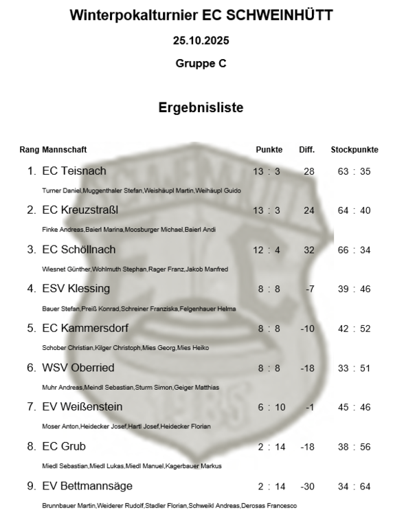 Die ersten 6 Mannschaften der Gruppe A und B, so wie die ersten 5 Mannschaften der Gruppe C durften sich über Fleisch -und Wurstpreise erfreuen!